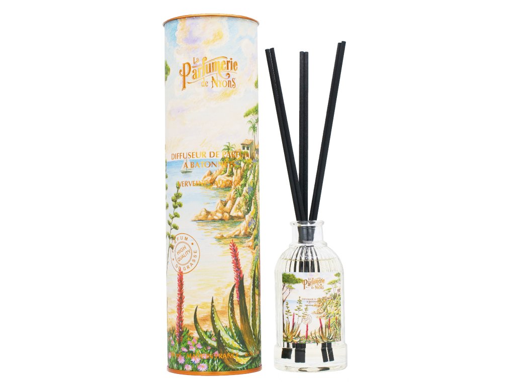 Značka: La Parfumerie de Nyons. Typ: aroma difuzér s ratanovými tyčinkami. Objem: 200 ml. Vůně: divoká verbena.