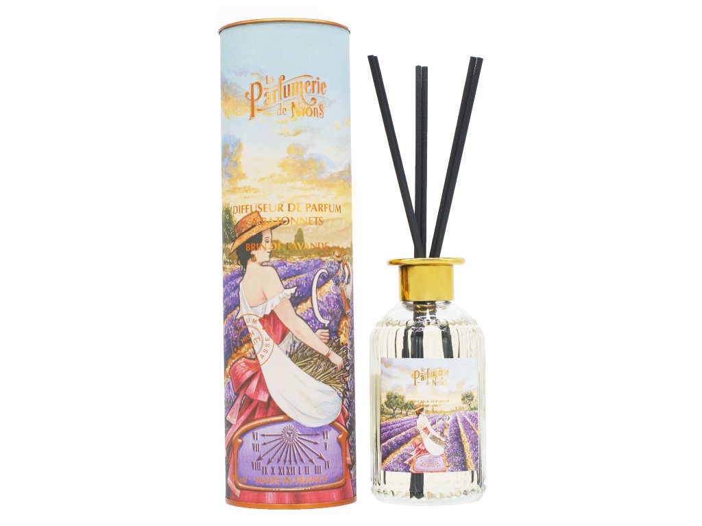 Značka: La Parfumerie de Nyons. Typ: aroma difuzér s ratanovými tyčinkami. Objem: 350 ml. Vůně: levandule.