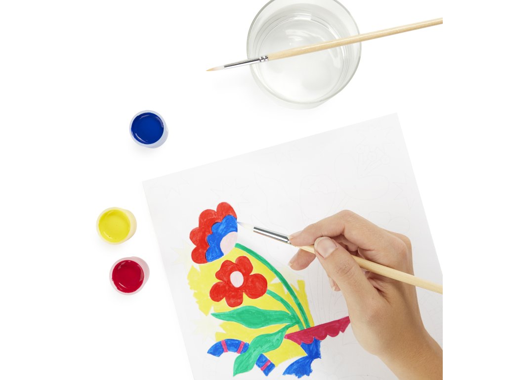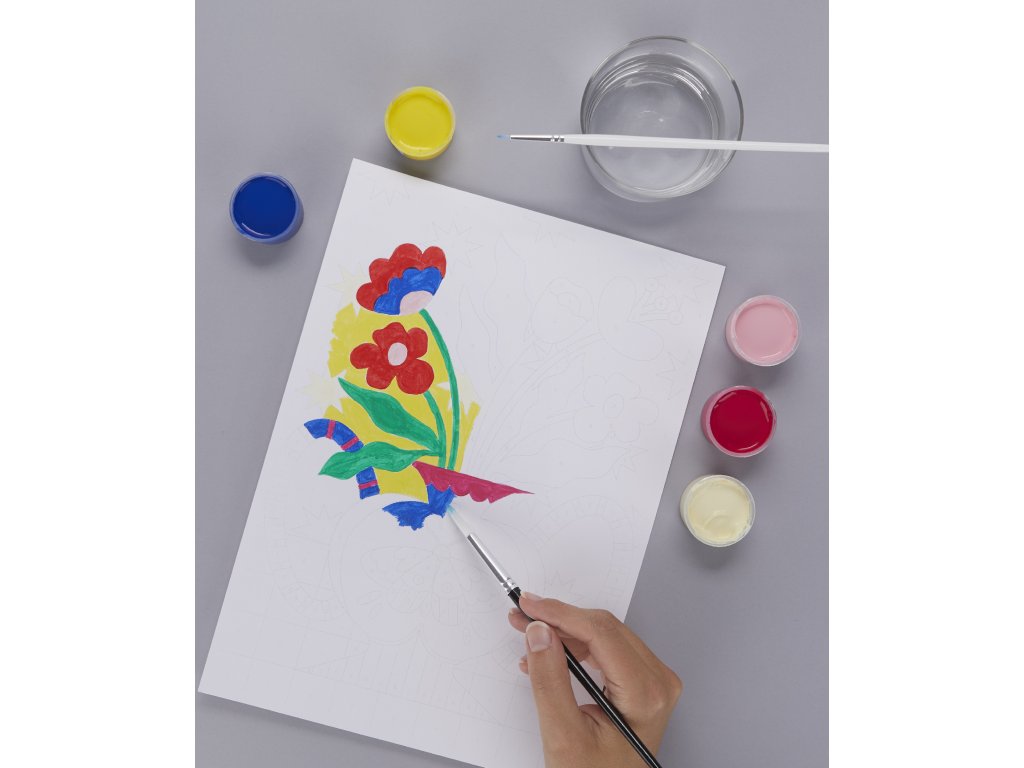 • Kompletní sada – A4 list 240 g, 8 akrylových barev a štětce 4 a 12