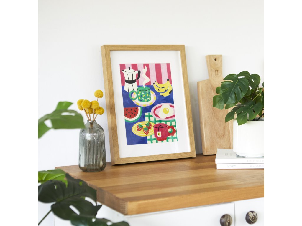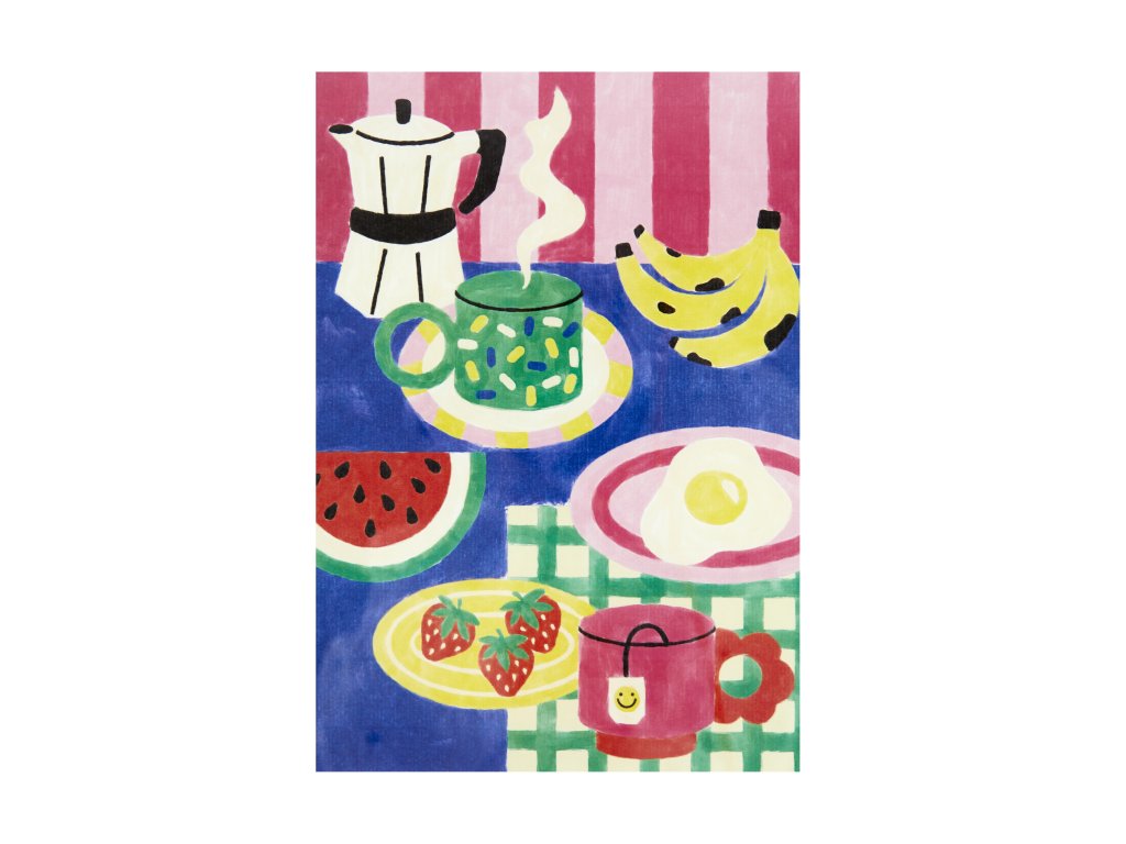 • Ilustrace Sofía Vázquez – barevný snídaňový motiv v grafickém stylu
