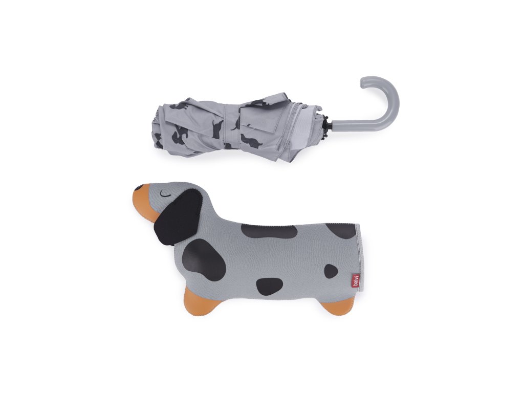 Značka: Balvi. Typ: skládací deštník. Motiv: Teckel (jezevčík). Barva: šedá. Materiál: nylon. Rozměry produktu: 40 × 17 × 6 cm. Délka zavřeného deštníku: 31 cm. Průměr po otevření: 98 cm. Design by: Balvi.