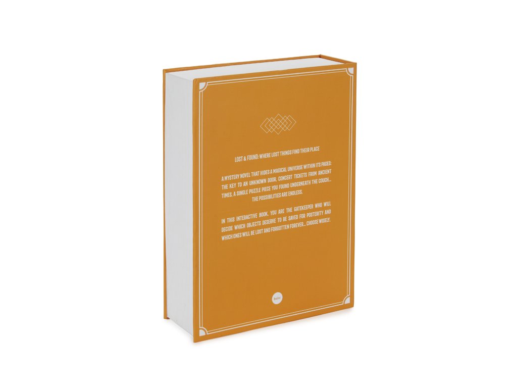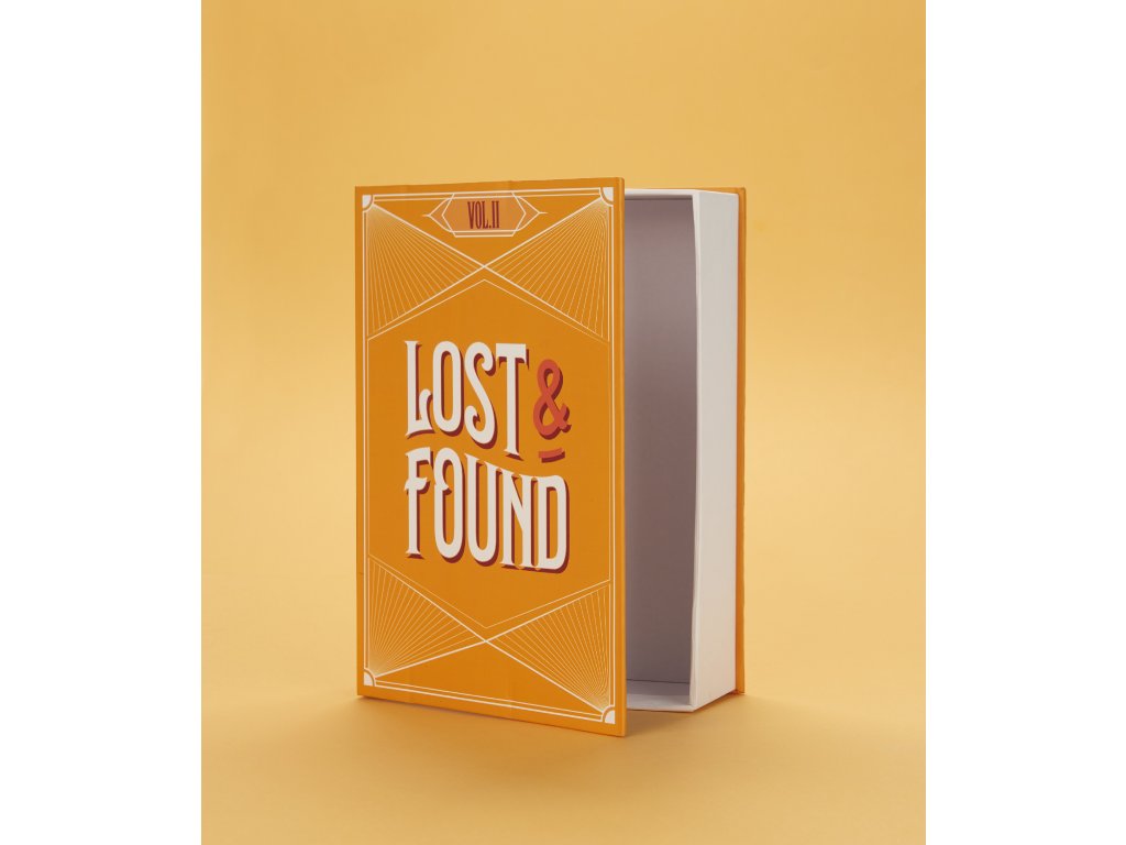 Balvi Lost & Found je kniha na ukládání, která slouží jako diskrétní úložný box na drobnosti. Vypadá jako běžná kniha do knihovny a má magnetické zavírání pro bezpečné uložení obsahu. Rozměry jsou 26 × 18,5 × 7 cm.
