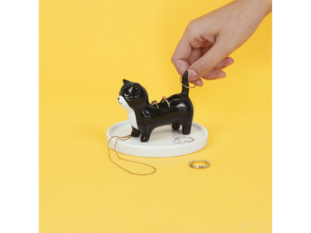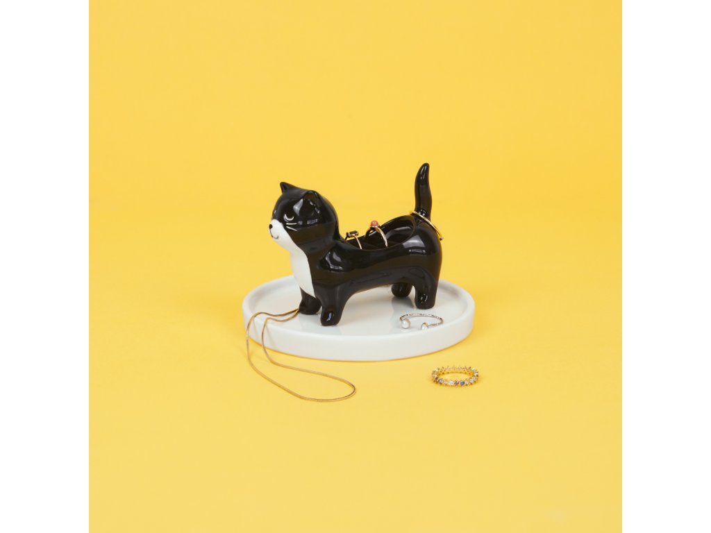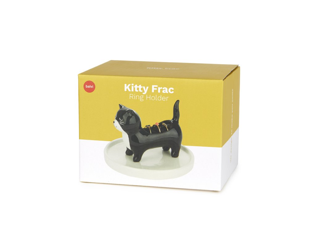 Značka: Balvi. Typ: stojánek na prsteny. Motiv: Kitty Frac (kočka). Barva: černá/bílá. Materiál: keramika. Rozměry: 7,3 × 11 × 11 cm. Design by: Balvi.