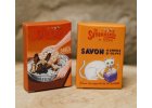 Francouzské mýdlo s vůní levandule v papírové krabičce s ilustrací destilačního přístroje – pocta tradičnímu řemeslu Provence.