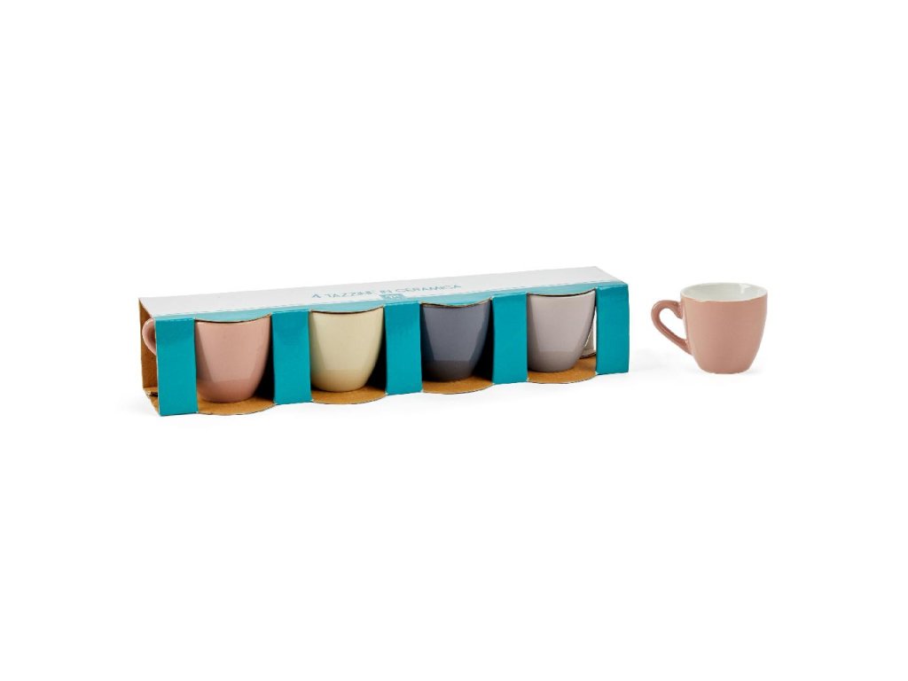 Sada obsahuje 4 keramické šálky na espresso. Objem jednoho šálku je 85 ml. Rozměry jsou 6 × 8,5 × výška 6 cm. Dodáváno v kartonu.