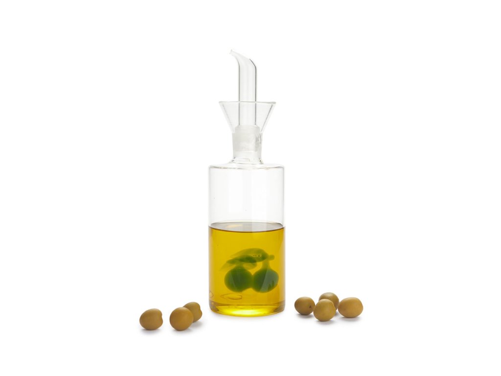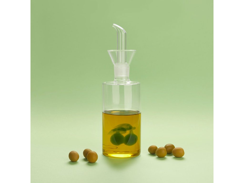 • Motiv oliv uvnitř – Skleněné olivy slouží jako dekorativní oddělovač oleje a dodávají středomořský nádech