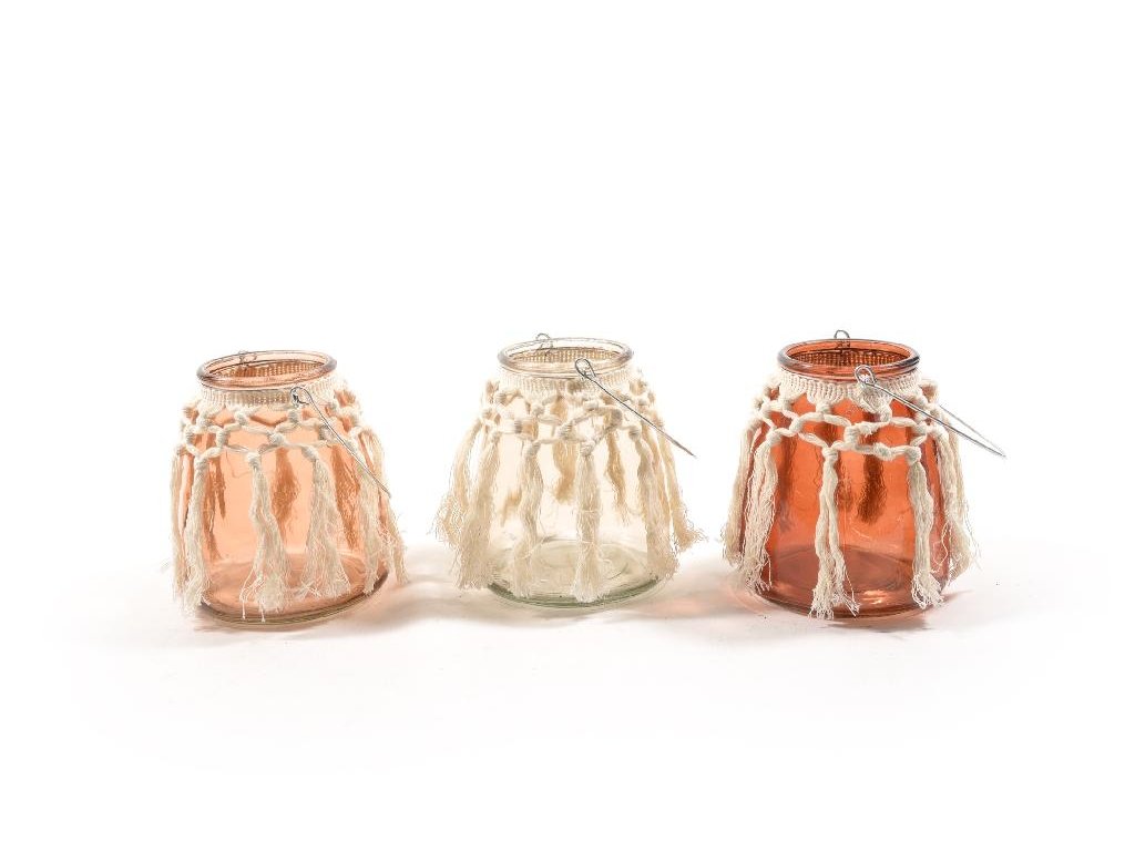 Skleněná lucerna "boho chic" s uchem a různými dek