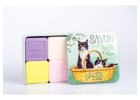 Mýdla v dóze jsou dostupná v různých variantách – od jednoho 100g mýdla až po sady 3× nebo 4×100g. Ilustrace v retro stylu s motivy Provence, levandule, bicyklů, zvířat nebo přírody dělají z těchto produktů nejen kosmetický doplněk, ale i krásný dárek či dekoraci do koupelny.