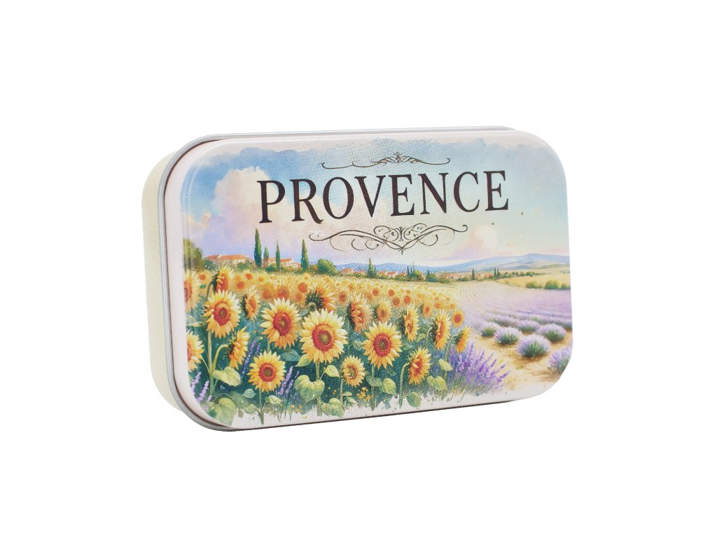 Plechová dóza na mýdlo 100 g (prázdná) – Slunečnice, La Savonnerie de Nyons