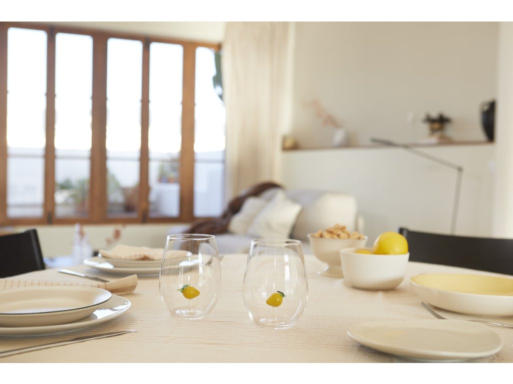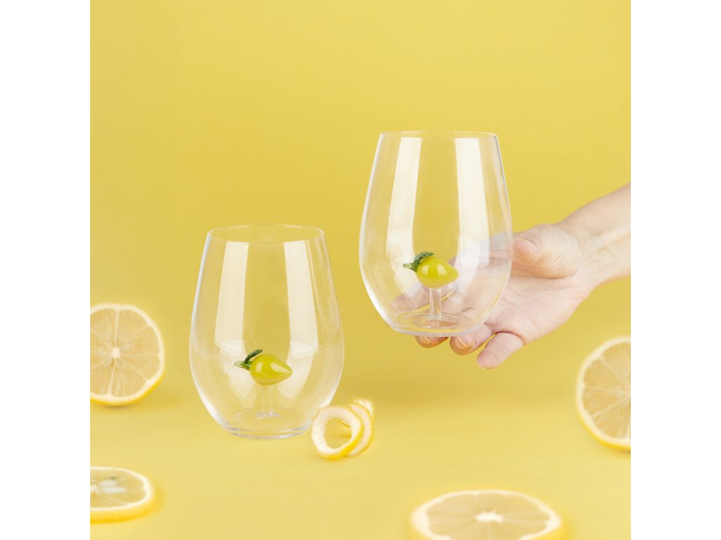 Balvi Botanical Lemon je sada dvou sklenic, která z jednoduchého pití vody nebo limonády dělá malý designový detail. Uvnitř každé sklenice je ručně vytvořená citronová figurka, takže každý kus je originál a na stole působí jako jemná dekorace. Sklenice jsou z borosilikátového skla, které je odolné a vhodné pro každodenní používání, a díky objemu 500 ml se hodí i pro servírování nápojů při návštěvě. Design navíc ladí s odpovídající lahví ze stejné řady. Aby se zachovaly ručně tvořené detaily, doporučuje se vyhnout myčce a mýt sklenice ručně.