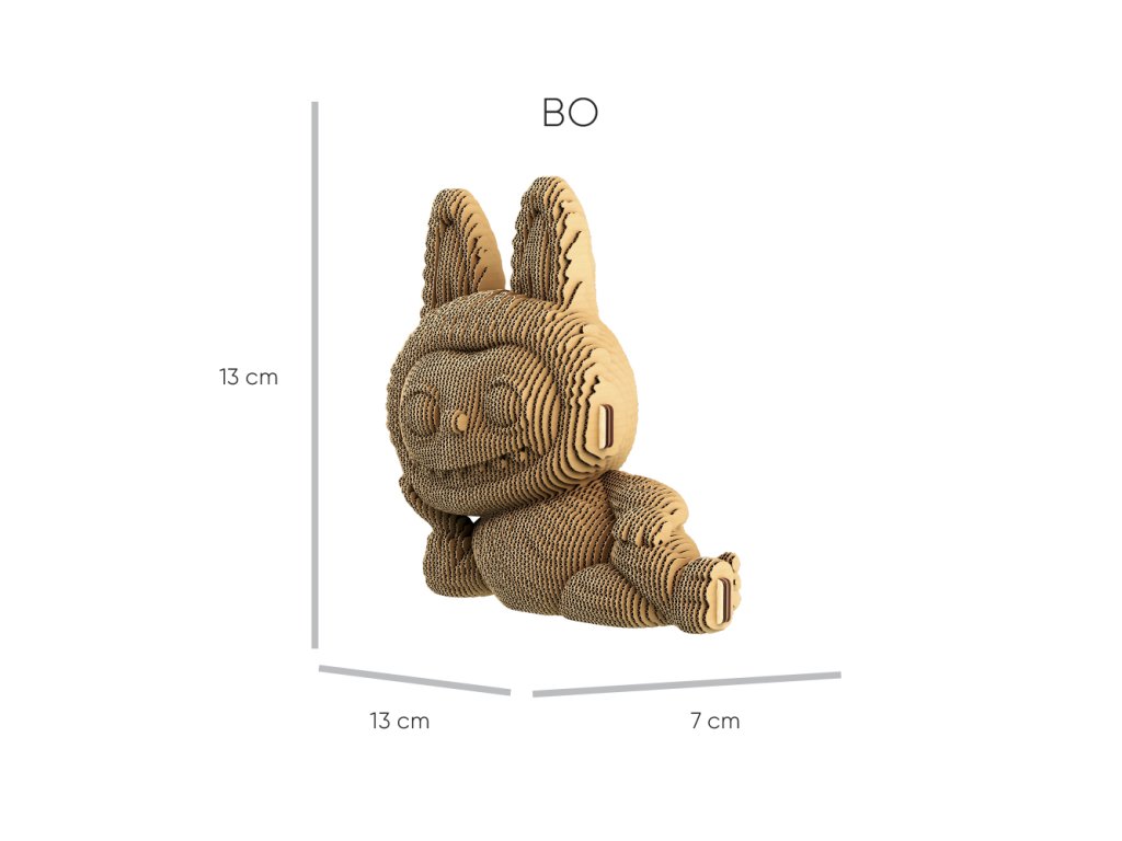 Značka: Cartonic. Typ: 3D puzzle skládačka. Motiv: BUBOO TRIO (BU, BI, BO). Materiál: eko-karton. Počet dílků: 237. Rozměry: BU 16 × 9 × 7 cm (stojící), BI 17 × 8 × 8 cm (sedící), BO 13 × 13 × 7 cm (odpočívající).