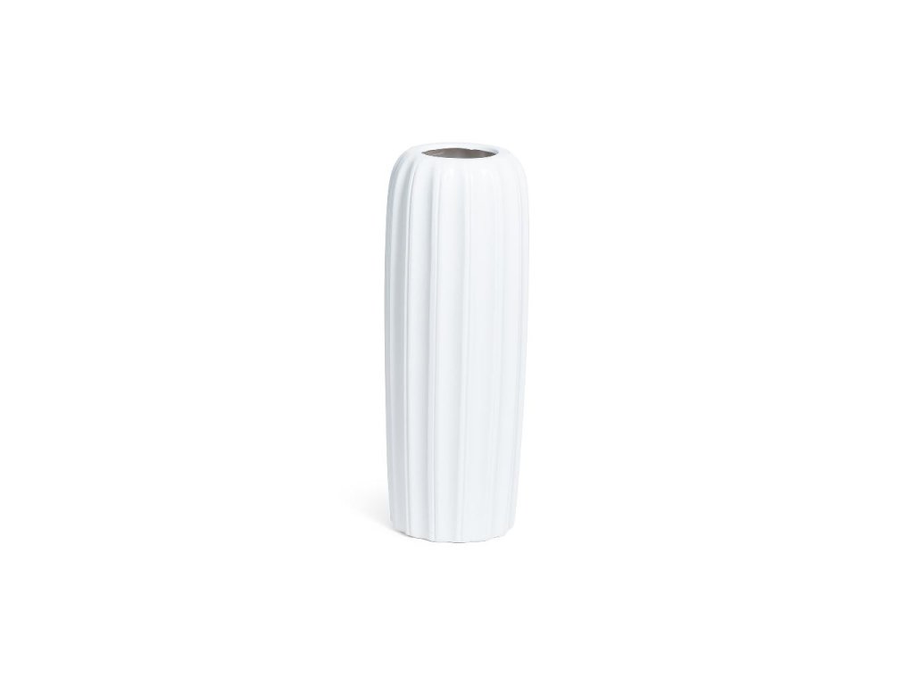 Keramická váza Mercury v bílé barvě je univerzální doplněk, který se snadno sladí s interiérem. Jemně členěný povrch dodává váze strukturu a eleganci, aniž by působil rušivě. Díky štíhlé siluetě vypadá dobře na komodě, jídelním stole i na polici a nechá vyniknout květinám i samotnému prostoru.
