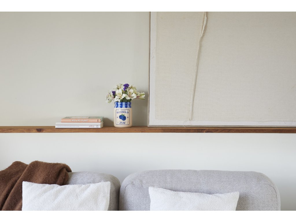 Balvi Blueberry je mini váza z keramiky ve tvaru sklenice od borůvkového džemu. Vintage vzhled a modrá barva přidají interiéru hravý, ale stále designově čistý akcent, který funguje na polici, pracovním stole i na parapetu. Díky odolnému keramickému provedení je vhodná pro každodenní používání. Kromě aranžmá s květinami ji využijete i jako malý organizér, například na doplňky, štětce, kosmetiku nebo jiné drobnosti, které chcete mít po ruce. Hodí se jako dárek pro milovníky rostlin, fanoušky džemů i pro každého, kdo má rád barevné dekorace.