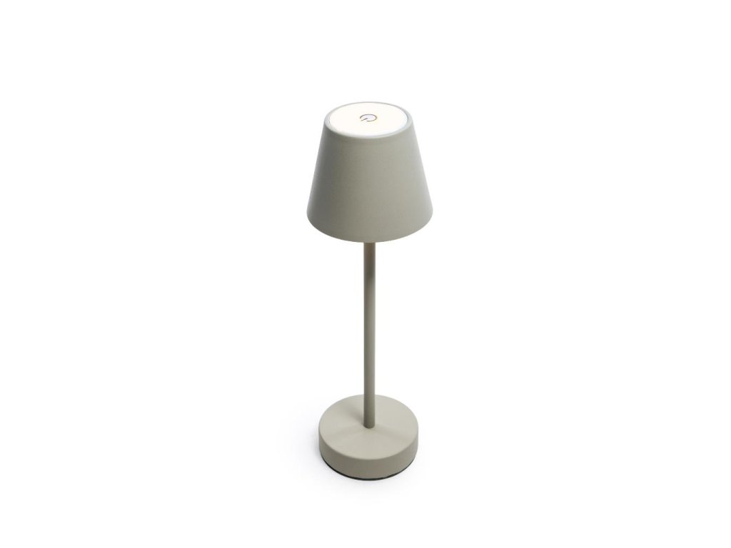 Stolní lampa je kovová, dobíjecí, stmívatelná a s dotykovým ovládáním. Má lithium baterii 1200 mAh. Rozměry jsou průměr 11 cm a výška 36 cm. Dodáváno v krabici.
