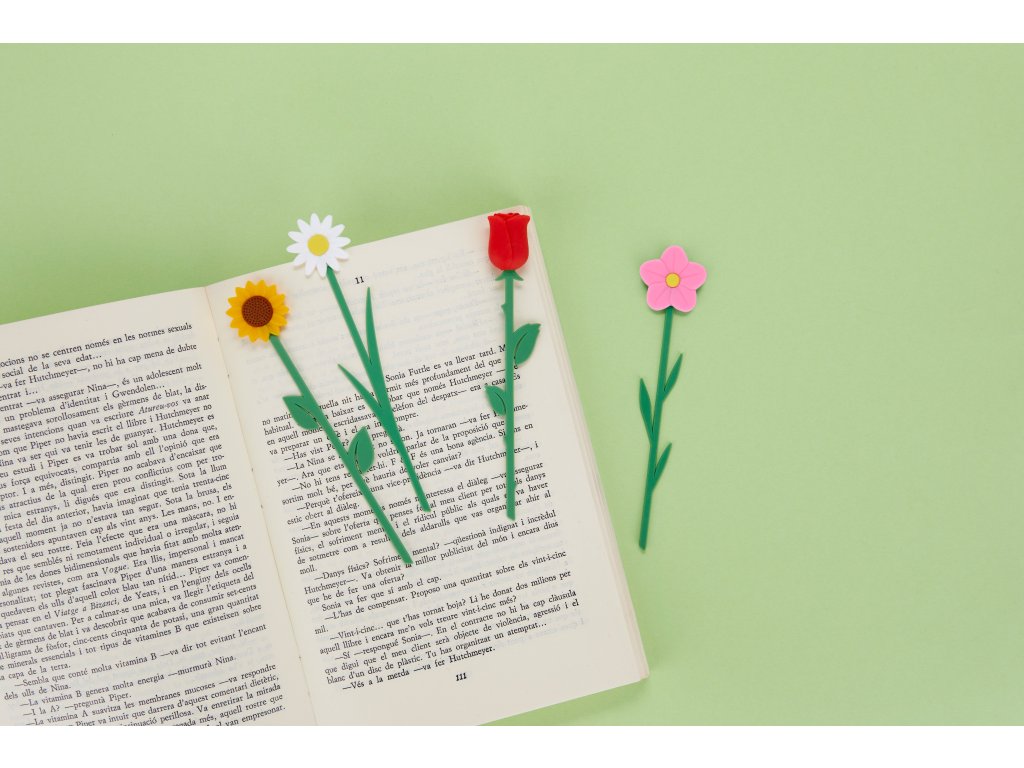 Displej Balvi The Language of Flowers obsahuje 24 ks květinových záložek do knihy ve 4 motivech. Růže představuje lásku, slunečnice radost, planá růže odvahu a sedmikráska přátelství i nové začátky. Záložky jsou tenké a lehké, chrání stránky a nezanechávají stopy. Jsou z odolného plastu a mají rozměry 1 × 2,5 × 12,5 cm. Barevný displej je vhodný na pult i do regálu a pomáhá prezentovat celou kolekci.
