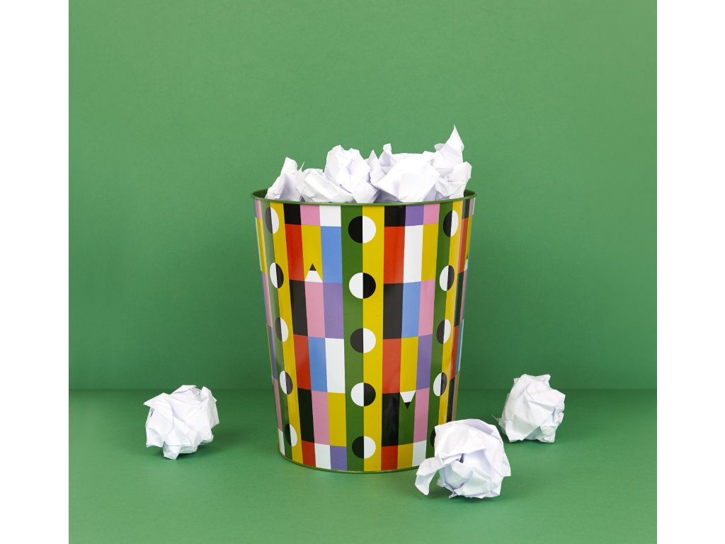 Koš na odpadky Balvi Los Pepes Pencils je kovový koš o objemu 8 litrů v zelené barvě s grafickým motivem ze spolupráce s portugalským duem Los Pepes. Hodí se do kanceláře, pracovního koutu i do pokoje, je odolný pro každodenní používání a snadno se čistí. Má rozměry 26 × 22 × 22 cm a lze ho kombinovat se stojánkem na tužky ve stejné kolekci.