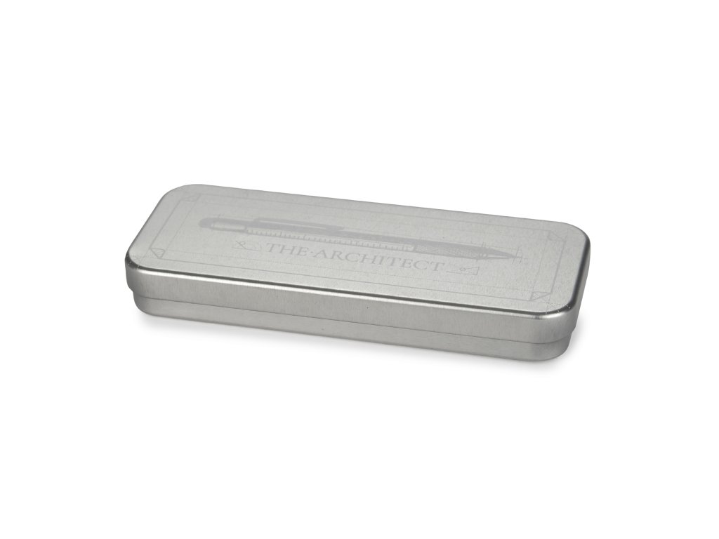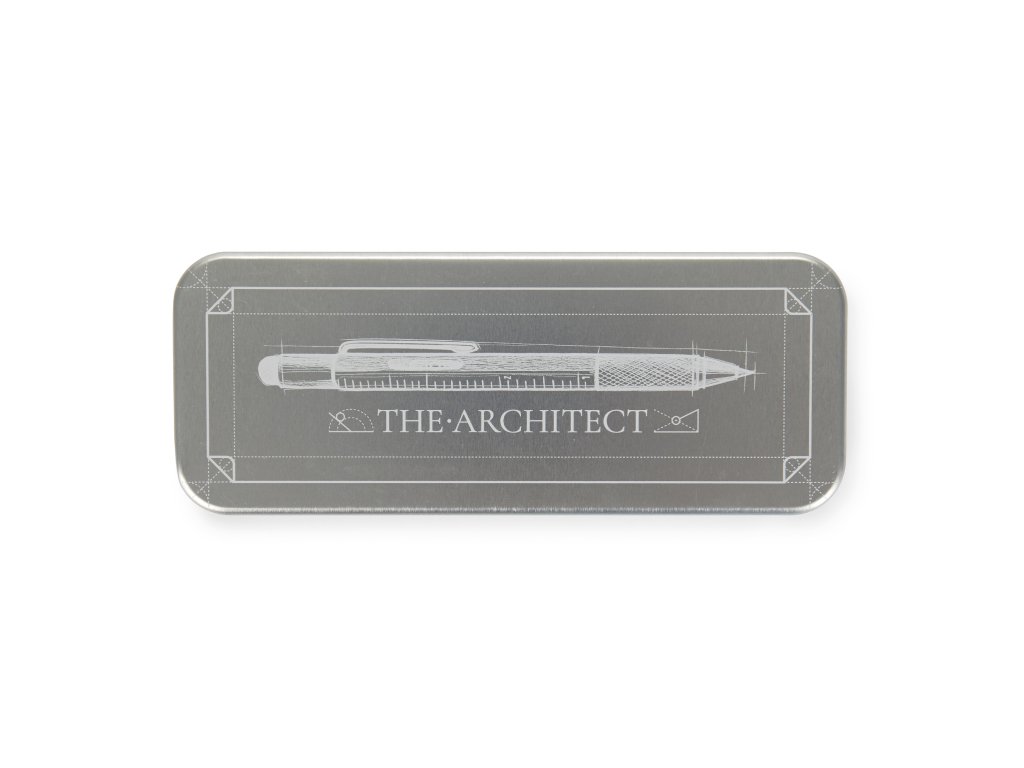 Balvi The Architect je stříbrná multifunkční propiska 5v1 z hliníku o rozměru 15 × 1,5 × 1 cm. Obsahuje propisku s černým inkoustem, pravítko 7 cm, bublinkovou vodováhu, stylus pro dotykové displeje a šroubovák se dvěma bity (plochý a křížový). Protiskluzový povrch zlepšuje úchop a kovový klip usnadní nošení. Je plnitelná a kompatibilní se standardními náplněmi D1. Dodává se v kovové krabičce, vhodné i jako dárek.