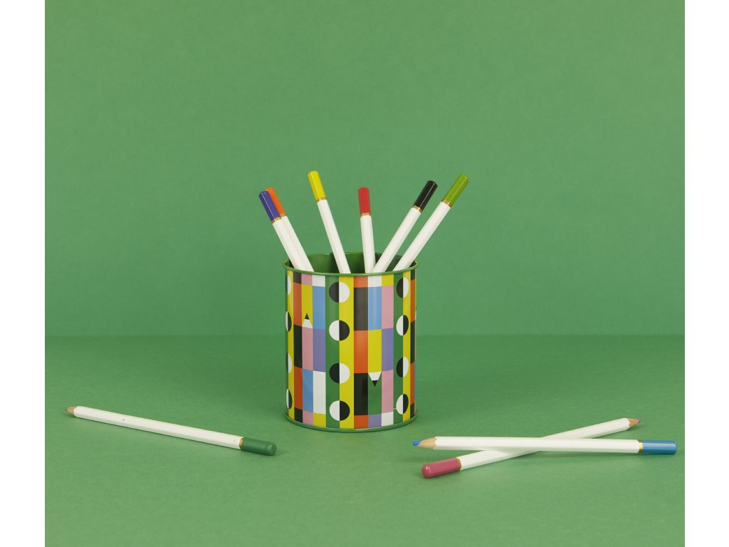 Balvi Los Pepes Pencils je kovový stojánek na tužky s barevným grafickým motivem, vytvořený ve speciální spolupráci s portugalským kreativním duem Los Pepes. Slouží jako praktický doplněk na pracovní stůl, do domácí kanceláře i do dětského pokoje, kde pomáhá udržet tužky a drobnosti přehledně na jednom místě. Díky odolnému materiálu je vhodný pro každodenní používání, snadno se čistí a dlouho si drží svůj vzhled. Pro sladěný pracovní kout lze kombinovat s dalším produktem ze stejné kolekce.