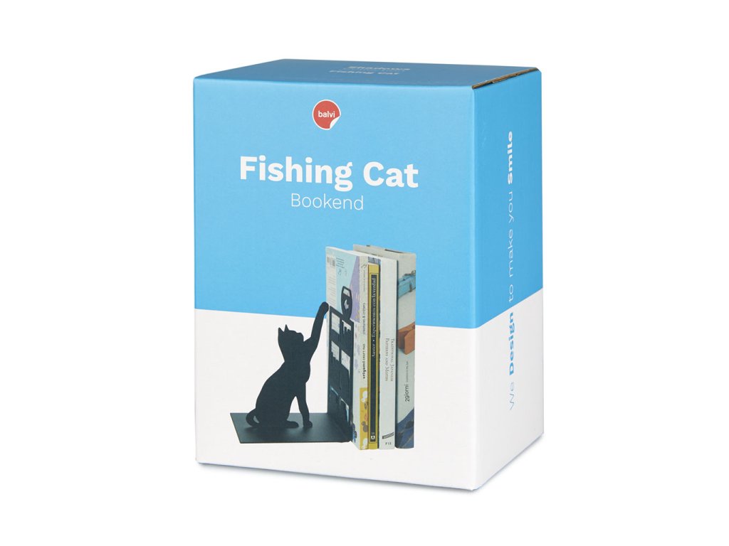 Zarážka na knihy Kočka s akváriem, kovová, černá, Balvi