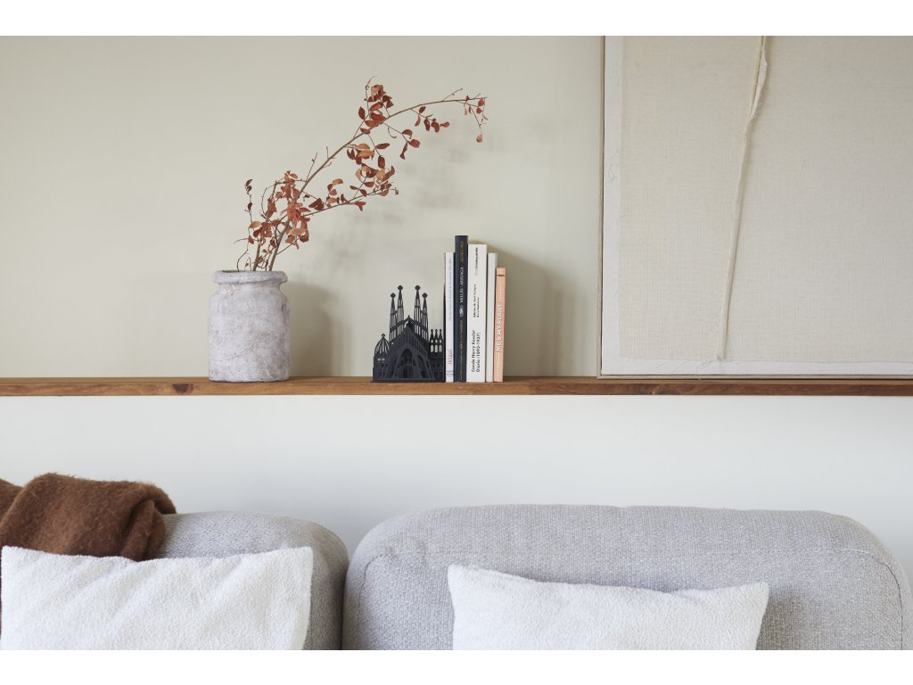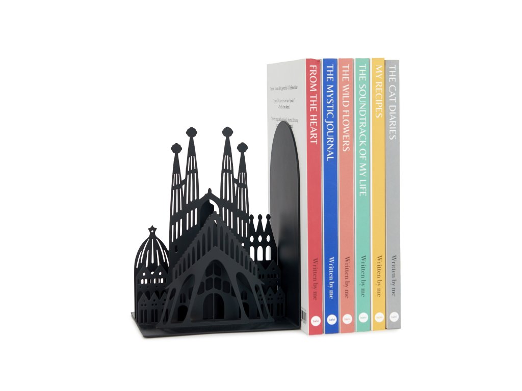 Balvi Barcelona je kovová zarážka na knihy, která udrží knihy i cestovatelské průvodce vzpřímeně a přehledně uspořádané. Hodí se na polici v obýváku, ložnici i v kanceláři, kde pomáhá zabránit převrhnutí a „sesuvu“ knih do strany. Je vyrobená z odolného kovu pro dlouhou životnost a doplněná protiskluzovými podložkami pro vyšší stabilitu na hladkých površích. Design je inspirovaný ikonickým symbolem Barcelony, věžemi chrámu Sagrada Família od architekta Antoniho Gaudího, a přináší do knihovny výrazný městský detail. Skvělý dárek pro cestovatele a milovníky Barcelony.