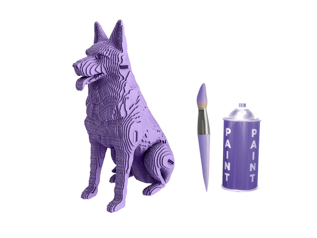 3D Puzzle skládačka Cartonic Německý ovčák je 3D model z eko-kartonu složený ze 111 dílků. Po sestavení má rozměr 23 × 10 × 18 cm a hodí se na poličku nebo pracovní stůl jako stylová dekorace. Model můžete dotvořit barvami a udělat si z něj originál podle vlastního vkusu. Je to vhodný dárek pro milovníky psů a kreativní skládání.