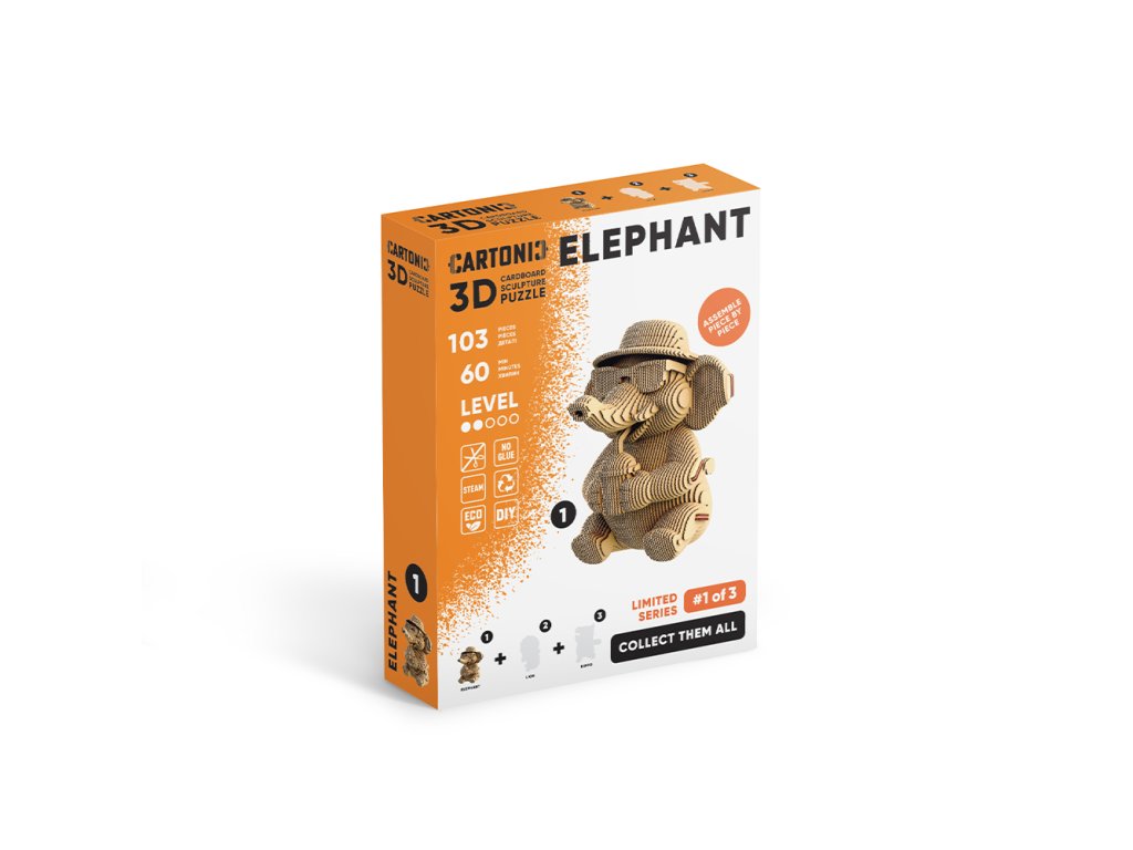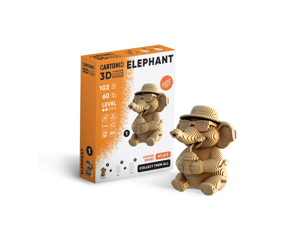 3D Puzzle skládačka Cartonic Slon, z eko-kartonu, 103 dílků