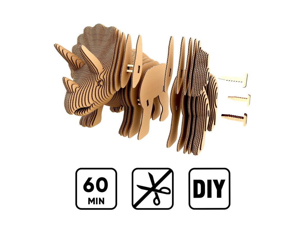 3D Puzzle skládačka Cartonic Triceratops, z eko-kartonu, 105 dílků